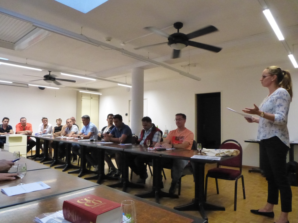A 19h00, le groupe repart en direction de l’hôtel où aura lieu la deuxième partie de la soirée. Me Lise Brügger, représentant l’Etude SPLC Avocats et Notaires et venue spécialement de Neuchâtel pour l’occasion, présente le service juridique de la Fédération. Au cours d’un exposé d’une trentaine de minutes captant l’attention des 20 contremaîtres et cadres de la construction présents dans la salle, elle explique le fonctionnement de la protection juridique professionnelle comme le vit les membres. En concluant par un exemple tiré de la pratique, elle donne un excellent aperçu des prestations à disposition. L’intervention de Lise Brügger se termine par une discussion ouverte et différentes questions, reprises également lors du repas commun qui s’ensuit.